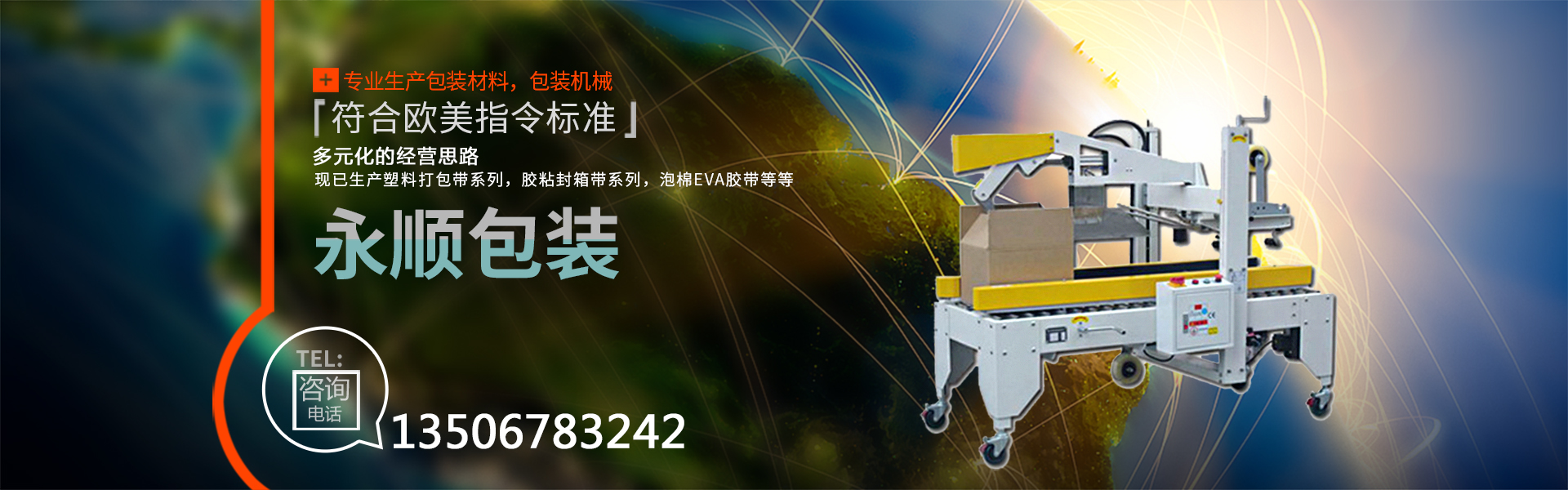 慈溪市永順包裝材料有限公司是一家專(zhuān)業(yè)生產(chǎn)包裝材料,包裝機(jī)械的廠(chǎng)家。公司自創(chuàng)建以來(lái),經(jīng)過(guò)不斷的努力,憑借優(yōu)異的產(chǎn)品質(zhì)量,良好的售后服務(wù),在市場(chǎng)上取得了突飛猛進(jìn)的業(yè)績(jī),獲得了客戶(hù)的廣泛認(rèn)可與贊譽(yù)。公司本著多元化的經(jīng)營(yíng)思路,現(xiàn)已生產(chǎn)塑料打包帶系列,膠粘封箱帶系列,泡棉EVA膠帶,鋁箔膠帶、美紋膠帶、牛皮膠帶、文具膠帶。全自動(dòng)打包機(jī),收縮包裝機(jī),移印機(jī),真空包裝機(jī),自動(dòng)封口機(jī),纏繞膜裹包機(jī),等各種包裝機(jī)械(無(wú)人化全自動(dòng)包裝機(jī)械)。其中塑料打包帶、粘膠帶已全面通過(guò)SGS認(rèn)證,符合歐美指令標(biāo)準(zhǔn)。